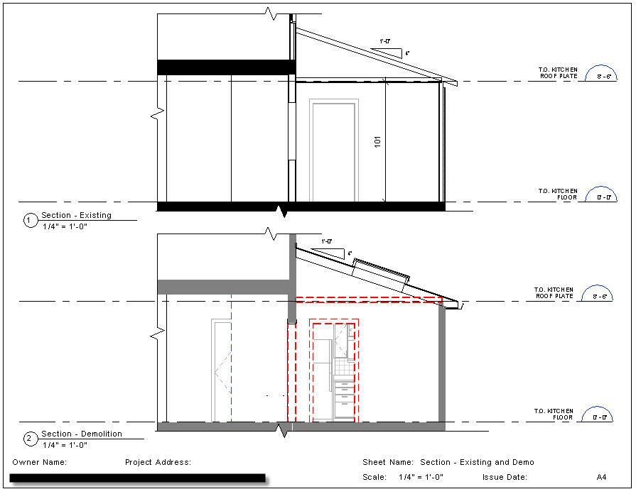 Why do I like this sheet so much? Sometimes it's the small things that you appreciate and in the case of this drawing it's the slope tag. They included this new tag in 2010 but the ribbon got so much attention that it went under the radar. The other thing I appreciate of this page is the lack of work and abundance of coordination. This is a true section, a true depiction of the model with no 2D needed. The phasing, skylights, gutter, kitchen, everything is 'the model'. Let's keeping moving through the days so we can discuss the billing time involved which will be on day 6.
